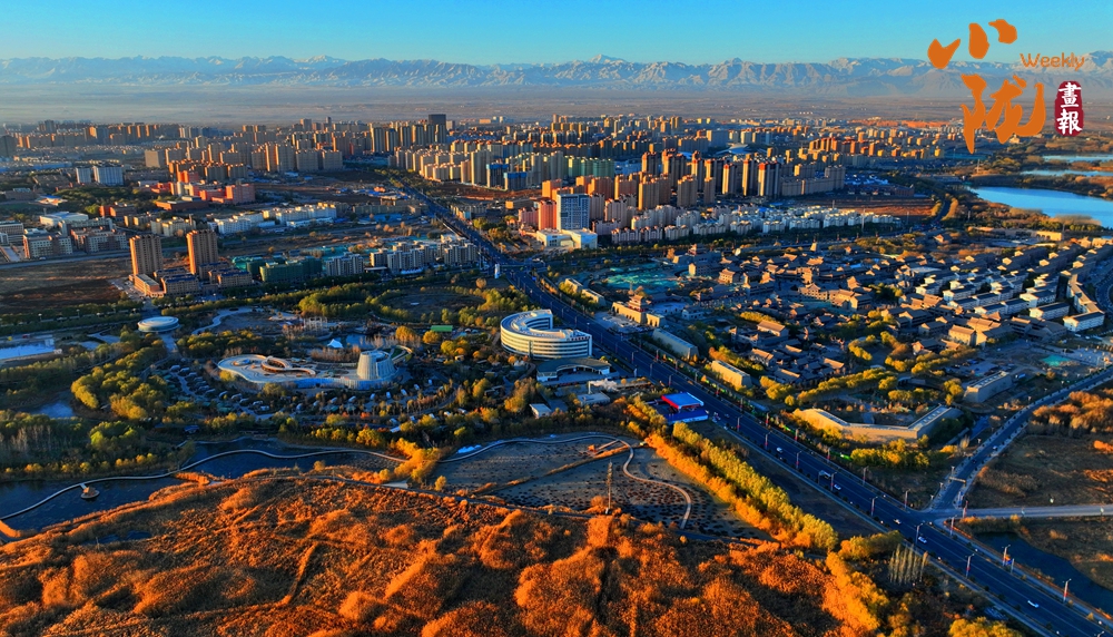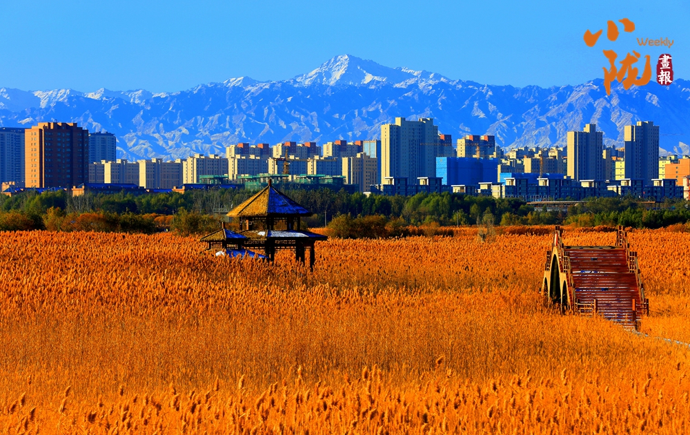 田園親昵,群樓挺拔,巍峨祁連。濕地公園里每一根蘆葦都像是一個(gè)靈動(dòng)的音符,在寒風(fēng)的指揮下,奏響了一曲壯麗的冬季交響樂(lè)。