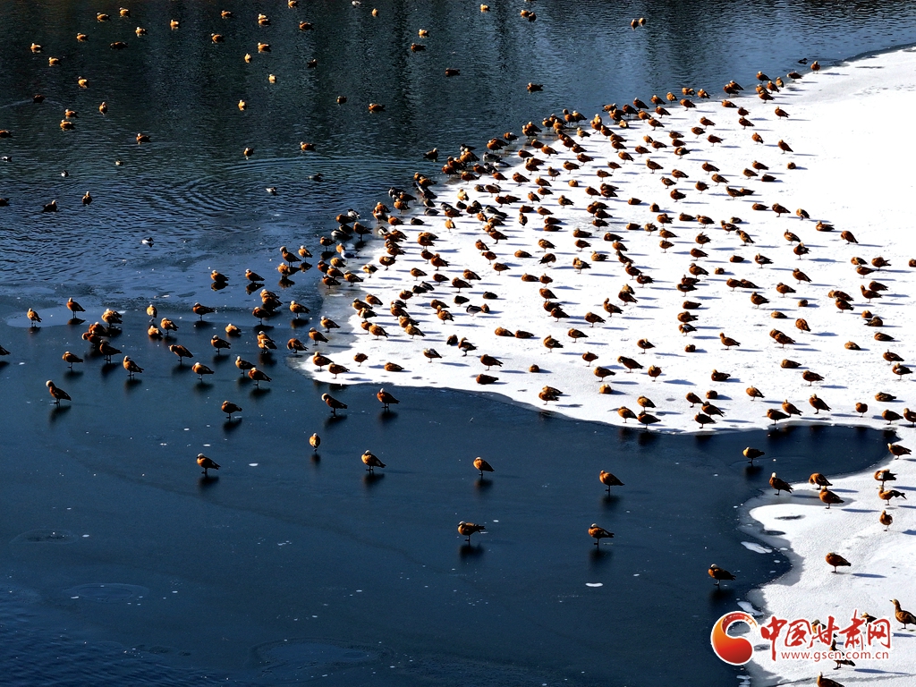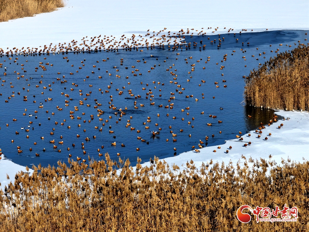 1月11日,甘肅省張掖國(guó)家濕地公園里,成群的赤麻鴨棲息覓食,成為濕地一道亮麗風(fēng)景。