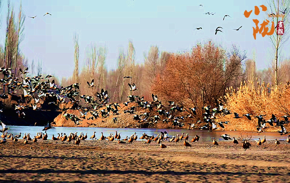 成群的候鳥在淺灘上悠閑地覓食、嬉戲,顯得格外的艷麗,為臨澤的冬日增添了一抹靈動與和諧的氣息。