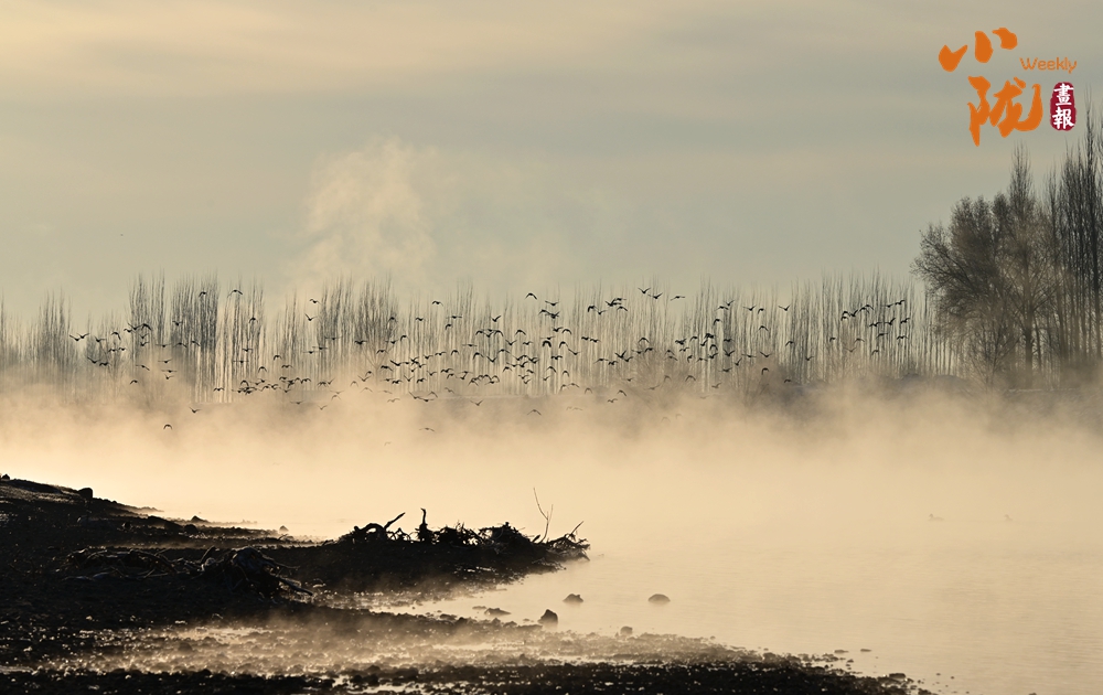 候鳥永遠是畫里跳動的精靈,它們或游弋,或起舞,是畫中的點點濃墨,聚散之間,畫面靈氣盡現(xiàn)。