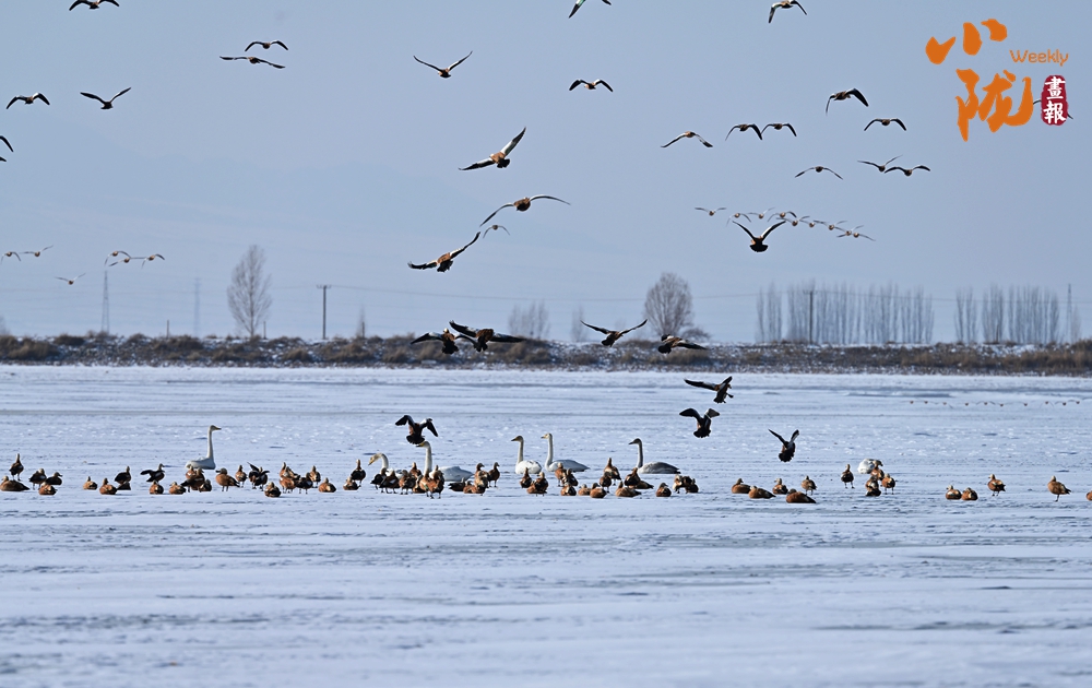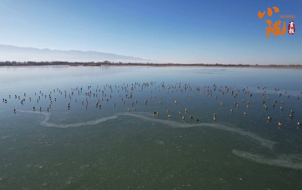 萬物復蘇,臨澤黑河濕地白天鵝、赤麻鴨等棲息覓食,構(gòu)成了一幅和諧的生態(tài)美景。