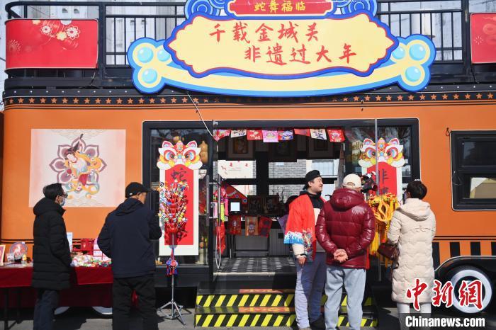 2月8日,甘肅省蘭州市城關(guān)區(qū)“非遺年貨購物月”活動現(xiàn)場,游人逛街。中新社記者 李亞龍 攝
