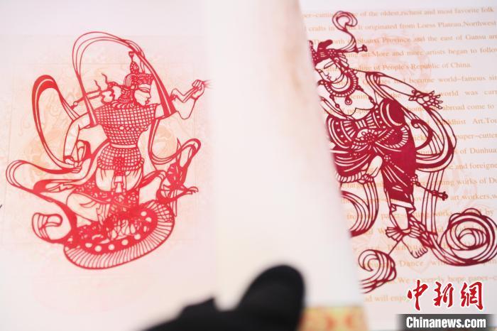 2月8日,甘肅省蘭州市城關(guān)區(qū)“非遺年貨購物月”活動現(xiàn)場展出的敦煌剪紙文創(chuàng)產(chǎn)品。中新社記者 李亞龍 攝