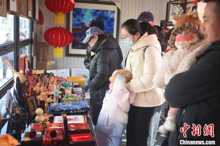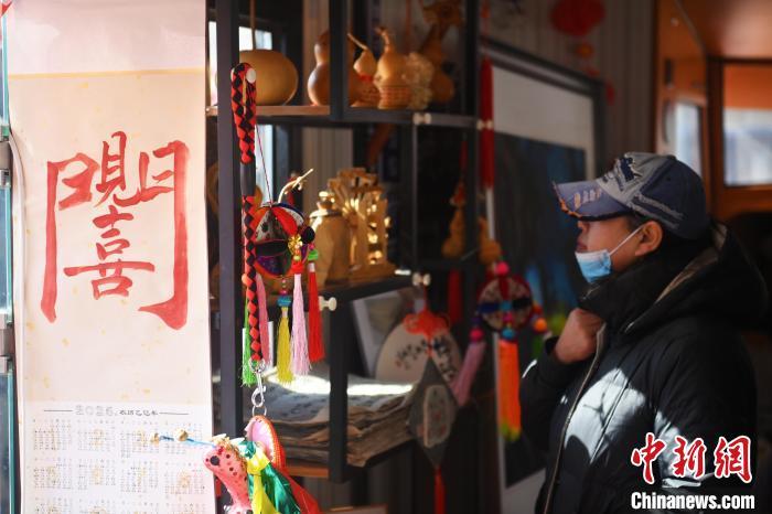2月8日,甘肅省蘭州市城關(guān)區(qū)“非遺年貨購物月”活動現(xiàn)場,游人選購非遺文創(chuàng)產(chǎn)品。中新社記者 李亞龍 攝
