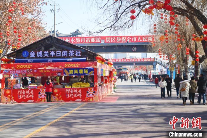 2月8日,甘肅省蘭州市城關(guān)區(qū)“非遺年貨購物月”活動現(xiàn)場,游人逛街。據(jù)悉,該活動是中國文化和旅游部非遺司組織開展的2025年“非遺好物 國潮煥新——四季非遺購物月”活動一季度的主題活動。通過豐富多樣的非遺促消費活動,發(fā)揮非遺在弘揚中華優(yōu)秀傳統(tǒng)文化、培育國貨“潮品”的積極作用?!≈行律缬浾?nbsp;李亞龍 攝