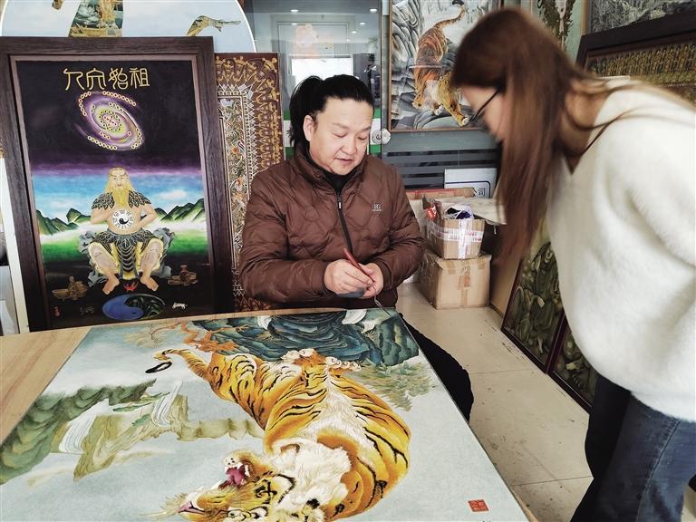 不遠(yuǎn)處的刻葫蘆攤位前,非遺代表性傳承人阮熙越運(yùn)刀如筆,在打磨光潤(rùn)的葫蘆表面刻出圖案。“刻針深淺決定墨色濃淡,蘭州葫蘆皮質(zhì)厚實(shí),才能承載這樣的藝術(shù)語(yǔ)言。”正在體驗(yàn)刻繪的大學(xué)生張萌說(shuō)。從傳統(tǒng)書(shū)畫(huà)到現(xiàn)代動(dòng)漫IP,從擺件到車掛,近幾年刻葫蘆在創(chuàng)新中走向大眾。據(jù)文旅部門統(tǒng)計(jì),非遺購(gòu)物月期間刻葫蘆銷售火熱,成為最受游客青睞的“蘭州名片”。