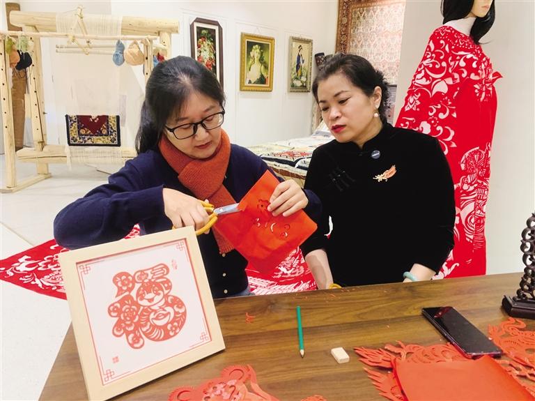 2007年,安寧剪紙被列入安寧區(qū)第一批非物質(zhì)文化遺產(chǎn)代表性項(xiàng)目名錄,2011年又成功入選蘭州市第二批非物質(zhì)文化遺產(chǎn)代表性項(xiàng)目名錄。52歲的剪紙藝術(shù)家史婷,是國(guó)家級(jí)非遺代表性傳承人。春節(jié)前夕,史婷剪紙工作室里人來(lái)人往,熱鬧非凡。她以“蛇元素”為主題,創(chuàng)作了《蛇盤兔》《雙蛇送福》等作品,還有福字、掛歷、抱枕等特色剪紙作品。一把剪刀在她的手中上下翻飛,剪出了“指尖上”濃濃的年味兒。