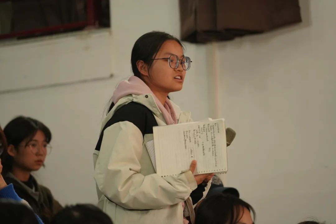 嘉賓發(fā)言環(huán)節(jié)結(jié)束后,同學(xué)們積極提問(wèn),林紅衛(wèi)從多個(gè)寫(xiě)作角度解答了大家的困惑。她強(qiáng)調(diào),寫(xiě)作需要用心觀察生活,通過(guò)反復(fù)練習(xí)將情感外化為行動(dòng),傳遞生活中的真善美。