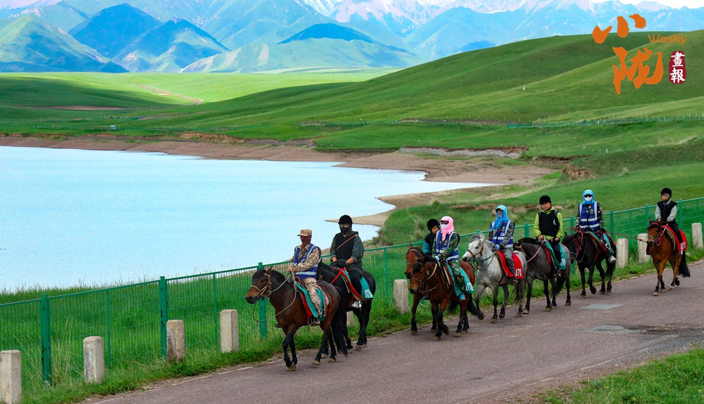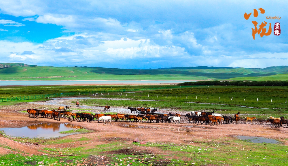碧空澄澈,云朵如輕柔棉絮般漂浮其中,遠處草場連綿起伏。牧民們趕著自家的馬群,向著繁茂的草場前行,氣勢雄壯。千百年來,馬兒一直是草原上的英雄,載著厚重的歷史車輪,載著游牧民族的繁衍生息,載著蒼勁渾厚悠揚的歌聲從亙古疾馳,滾滾而來。