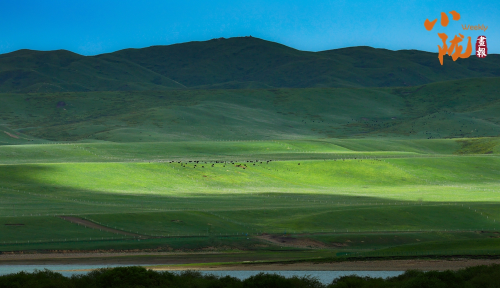 一眼望去,青色的山坡舒展如畫,似一塊巨大的綢緞鋪至天邊。羊群的動感之美、風的味道、云的姿態(tài)、星空的低語、自由奔放的生命,一起構成草原最獨特的氣質。