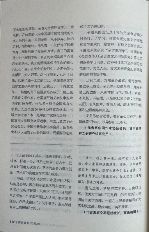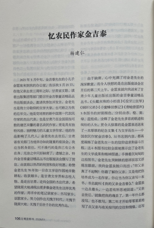 《博覽群書》期刊發(fā)表楊建仁文章《憶農(nóng)民作家金吉泰》