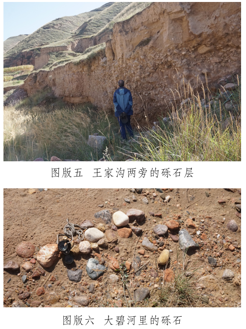 玉石山南麓有一條自東向西流過峽口鎮(zhèn)注入洮河的河——大碧河,《狄道州志》里稱為“打璧河” [12]。玉石山和山下大碧河之間有幾條溝,這些溝是上玉石山的必經(jīng)道路,也是雨水夾帶山上的石頭注入大碧河的通道。在甘肅臨洮馬家窯文化研究院李家功的引領(lǐng)下,我們對大碧河中下游和通往玉石山的三條支溝進(jìn)行了較系統(tǒng)的調(diào)查,調(diào)查方法是在訪問當(dāng)?shù)赜嘘P(guān)人員的基礎(chǔ)上,進(jìn)行野外實(shí)地考察。大碧河連接玉石山的支溝主要有三條:第一條大溝是王家溝,是玉石山和峽口鎮(zhèn)之間的通道,大雨過后附近的村民往往會在這條溝里撿到玉石。在王家溝靠近玉石山的茨泉子村,十多戶村民都拿出自己在溝中揀到的十余件山流水玉料(圖版四)供我們觀察、檢測。玉料大小不一,大者長軸約30厘米,多呈次圓狀,均有玉皮,內(nèi)部質(zhì)地多細(xì)膩,肉眼鑒定和XRF檢測結(jié)果表明,玉石主要包括黃綠色(含草花)透閃石玉、透輝透閃石玉及透閃石大理巖,另外還有螢石料。王家溝下游匯入大碧河入口段,發(fā)育三級階地,前人使用大型機(jī)械開挖二、三級階地礫石層(圖版五),據(jù)說在其中找到較多玉料,現(xiàn)政府已叫停。在階地礫石層中我們也撿到淺黃綠色透輝透閃石大理巖及半玉化的大理巖礫石,這些礫石是玉石山玉礦的近礦圍巖。王家溝匯入大碧河,因此大碧河中也可以撿到從王家溝滾落的玉石山上的玉石和其它巖石。我們在大碧河峽口鎮(zhèn)段揀到較多直徑約3~5厘米來自玉石山的透閃石大理巖,巖石磨圓度高,成球狀或橢球狀,質(zhì)地較細(xì)膩。據(jù)當(dāng)?shù)厝酥v,也有人在大碧河峽口鎮(zhèn)段撿到過小塊的玉石;第二條溝是小溝——漆家溝,位于王家溝西面,雖位于玉石山正面,但鮮有聽到在溝里撿到玉石的消息;第三條溝是王家溝東面的石景峽,距離玉石山相對較遠(yuǎn),其溝腦是玉石山的東延部分?!兜业乐葜尽防镙d“打璧河,在州北三十里,源出石井峽,即打璧谷” [13]。這里的“石井峽”可能就是現(xiàn)在所說的“石景峽”,峽中腰有水冒出。但現(xiàn)在的大碧河不源于石景峽,而是源于洮河和渭河的分水嶺。石景峽雖可能是史籍上的打璧谷,且在峽里也撿到了透閃石大理巖礫石,但沒有發(fā)現(xiàn)玉石器和玉料。