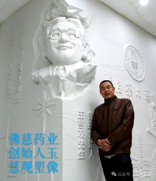 2020年所作,巧妙融圓雕與浮雕于一體,在轉(zhuǎn)角處營造頭像破壁而出的視覺詩意。分體制作,嚴(yán)絲合縫,最終以真石漆噴砂成色,莊重中見靈動,至今仍是馬先生時常駐足回望的滿意之作。