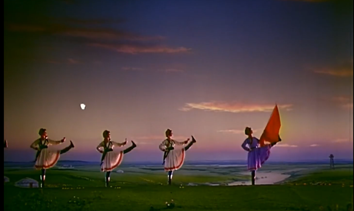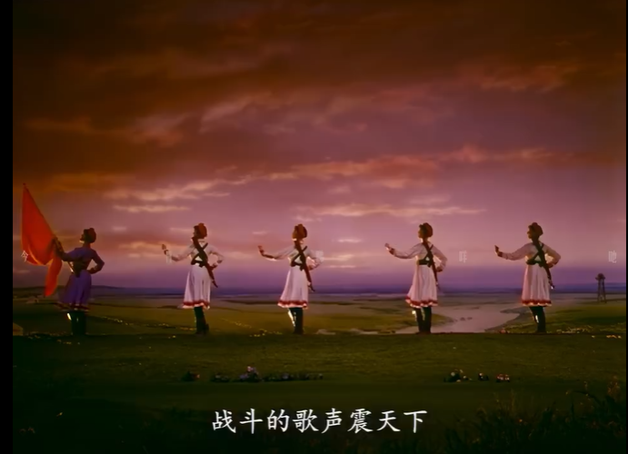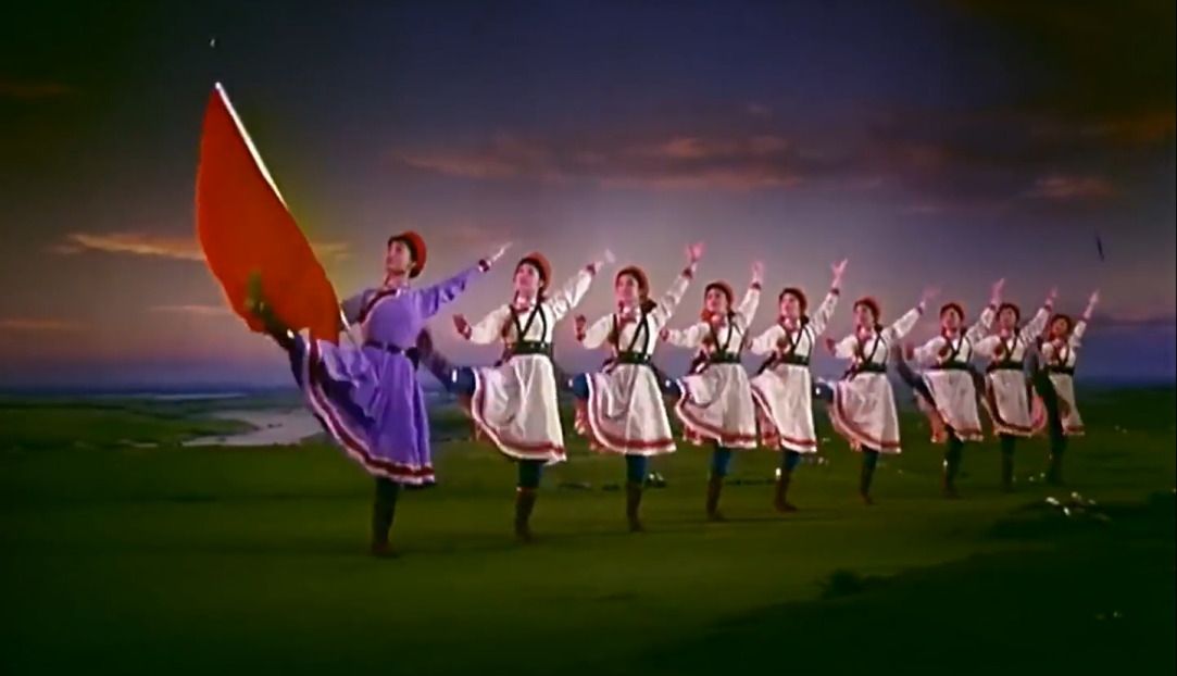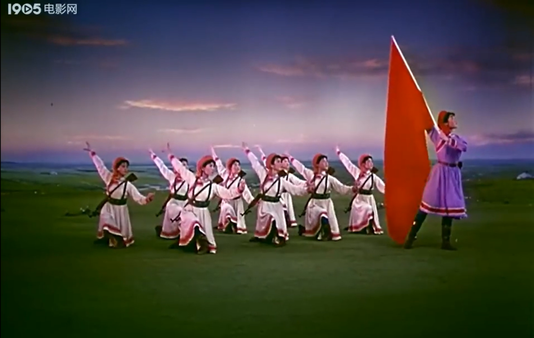 今天,當(dāng)我們談?wù)摗恫菰癖窌r(shí),很大程度上是在談?wù)摗栋倩幤G》中的《草原女民兵》。電影不僅保存了這部舞蹈,更在某種意義上重新定義了它。那些通過鏡頭精心構(gòu)建的畫面,那些經(jīng)過剪輯強(qiáng)化了的節(jié)奏,那些通過混音豐富了的聲音,共同塑造了后世對這部作品的集體認(rèn)知與審美想象。