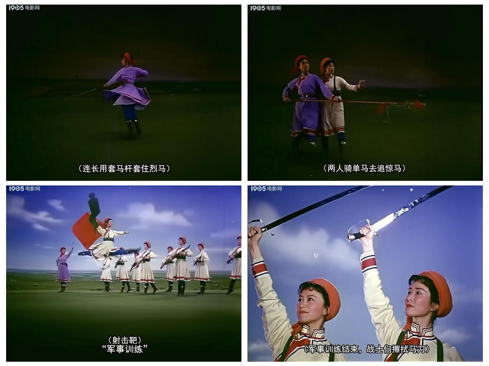 蒙太奇剪輯的節(jié)奏再造則重塑了舞蹈的視覺體驗(yàn)。舞臺上的舞蹈遵循線性的、不可逆的時(shí)間流,而電影通過剪輯,可以打破這種線性束縛,創(chuàng)造全新的節(jié)奏與韻律。在表現(xiàn)女民兵與暴風(fēng)雨搏斗的段落中,快速的鏡頭切換、不同角度的交替呈現(xiàn)、動作的重復(fù)與強(qiáng)化,構(gòu)建出一種比現(xiàn)場演出更為緊張、更具沖擊力的視覺節(jié)奏。舞蹈中“揚(yáng)鞭催馬”的豪邁、“戰(zhàn)刀閃亮”的凌厲,通過精心設(shè)計(jì)的剪輯,被提煉為一系列極具標(biāo)志性的視覺符號,深深烙印在觀眾的記憶中。
