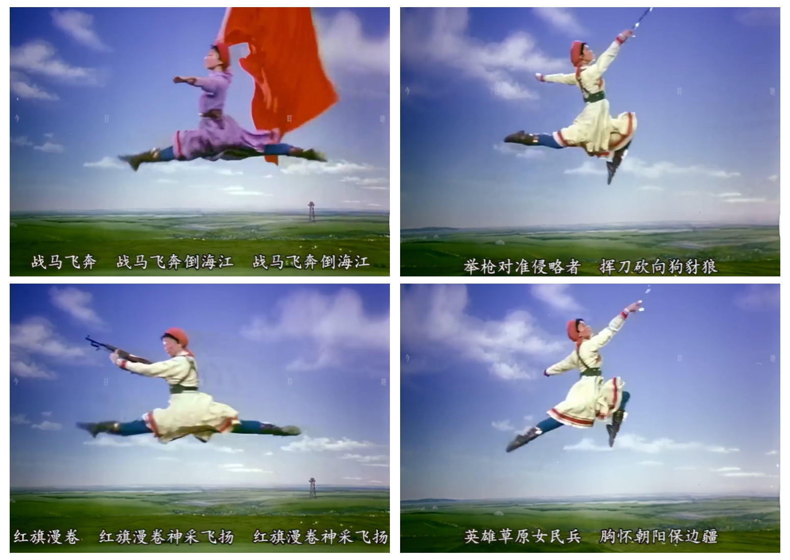 這并非虛構(gòu)的圖景,而是源自錫林郭勒草原的真實(shí)印記。1970年,帶著“到草原看真正的馬與女民兵”的想法,編導(dǎo)黃伯壽、梁文綰等深入牧區(qū)一個多月,將北京知青連長“躍馬遠(yuǎn)射、藏身馬腹”的矯健身姿,與蒙古牧人的豪邁、知青的堅(jiān)韌一同采擷為創(chuàng)作素材,又融合賈作光《牧馬舞》中“勒馬翻身”的經(jīng)典語匯,為舞蹈注入了靈魂 。舞臺上的每一個動作,都凝結(jié)著文工團(tuán)少女們的千錘百煉:每日清晨五點(diǎn)半的軍號、繞軍區(qū)大院的晨跑、浸透練功服的汗水,將十幾歲的青春擰成紀(jì)律與柔美交織的繩——既有“召之即來,來之能戰(zhàn)”的鏗鏘,亦有少女對美的執(zhí)著向往。