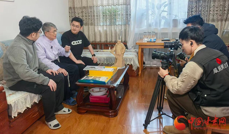 兩度擔(dān)任鐵人秘書(shū)的孫寶范(左二)與孫子、外孫接受鳳凰網(wǎng)甘肅頻道采訪(fǎng)?!£悤员?攝