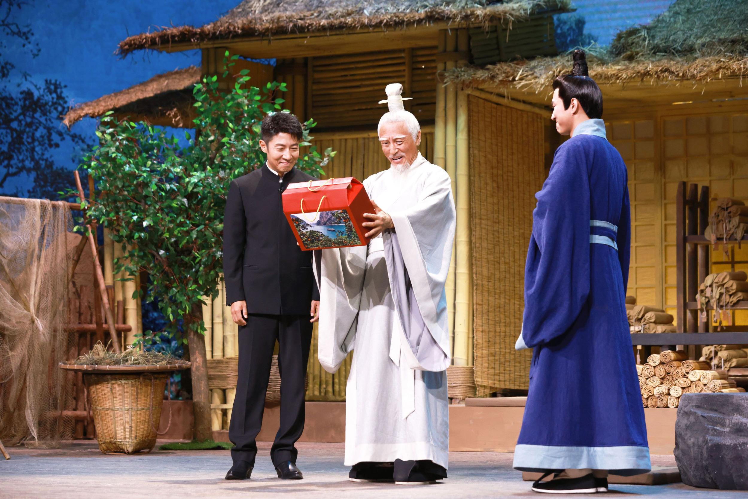 舞臺(tái)上,屈原對(duì)著聶海勝、劉伯明、湯洪波三名中國(guó)航天員連連揮手,他抑制不住內(nèi)心的激動(dòng):“路曼曼(漫漫)其修遠(yuǎn)兮,吾將上下而求索。我看到了最浪漫的詩(shī)!我把詩(shī)寫(xiě)在竹簡(jiǎn)上,他們把詩(shī)寫(xiě)在宇宙中!”