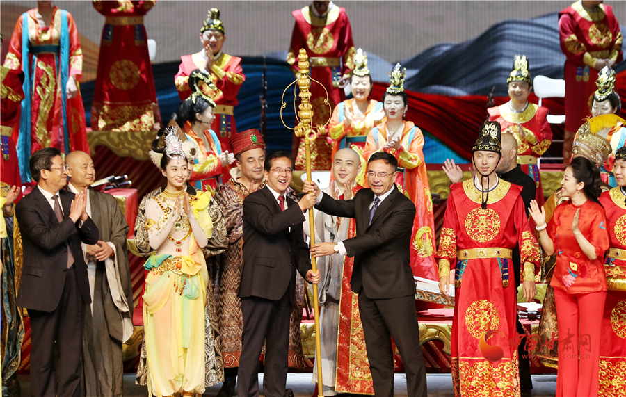 《玄奘西行》作為世界首部大型民族器樂劇,以絲綢之路文化交流使者玄奘的歷史故事為題材,集多民族樂器演奏和戲劇表演為一體,集中展示了敦煌莫高窟壁畫復(fù)原古樂器及古絲綢之路各民族傳統(tǒng)音樂的美妙旋律,體現(xiàn)了當(dāng)代民族音樂的繼承與創(chuàng)新精神,是我國民族器樂舞臺藝術(shù)的高峰之作。演出結(jié)束后,中央民族樂團(tuán)向甘肅省文藝院團(tuán)捐贈舞美道具,并指導(dǎo)幫助甘肅省文藝院團(tuán)實現(xiàn)《玄奘西行》的常態(tài)化駐場演出,為甘肅省再添一張靚麗的文藝名片。