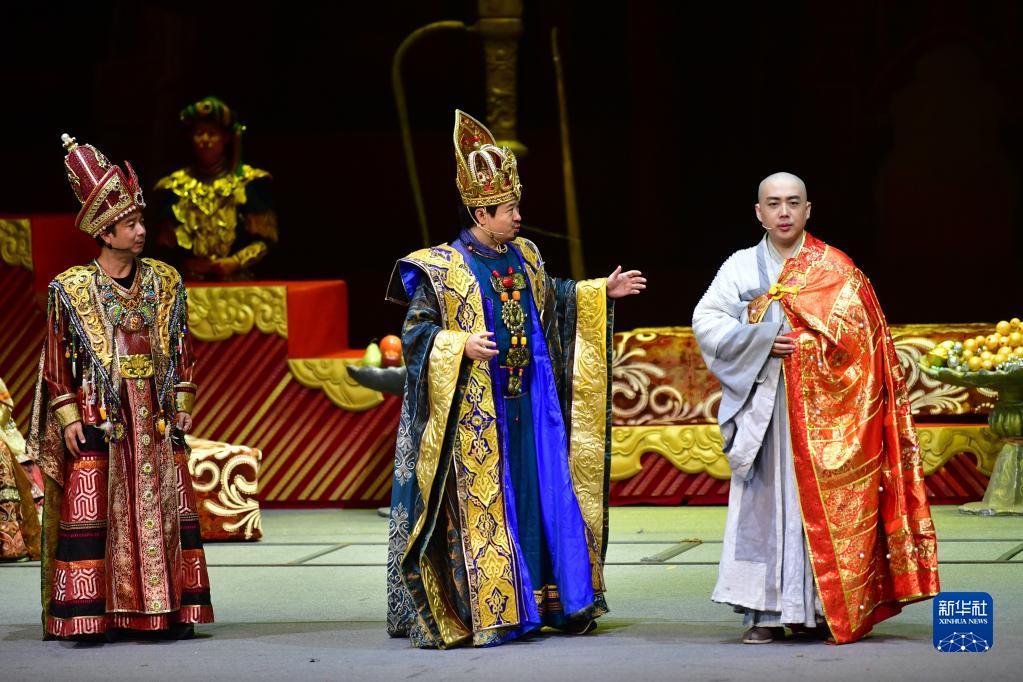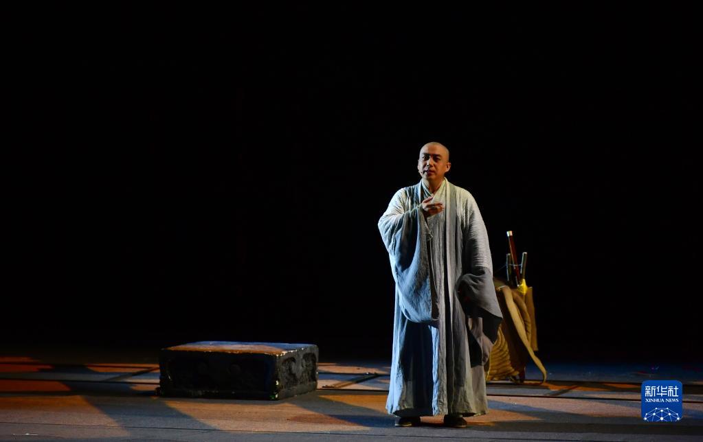 演員在敦煌大劇院表演大型民族器樂劇《玄奘西行》(9月23日攝)。新華社記者 陳斌 攝