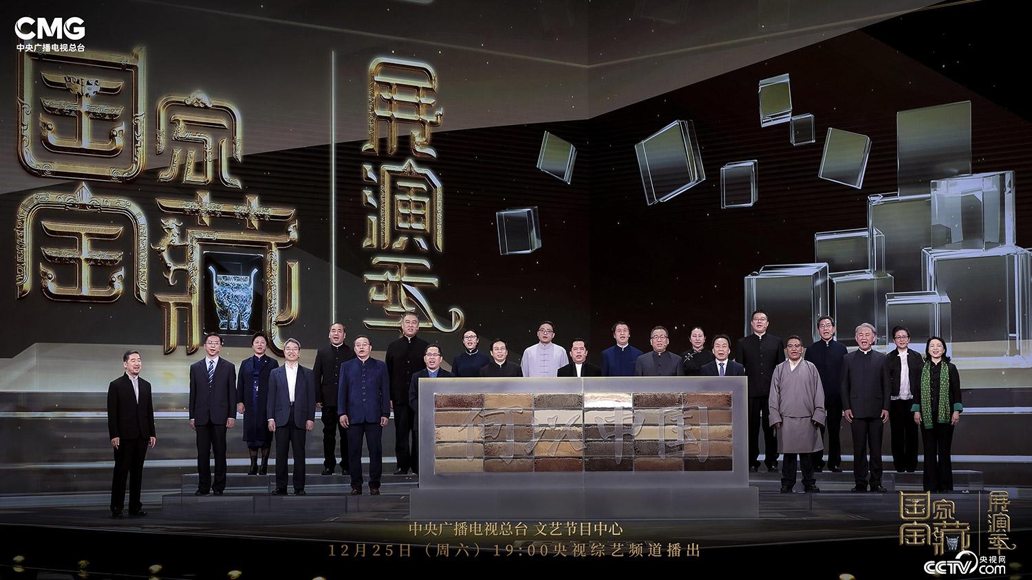12月25日晚,《國家寶藏·展演季》國寶盛典暨《國家寶藏》文物特展啟動儀式在中央廣播電視總臺央視綜藝頻道播出。來自全國三十家參展博物館的館長們首度齊聚一堂,共同講述即將在特展中亮相的國寶們背后的故事,并從各地重要考古遺址中集土,聚土成器,共同匯聚成“何以中國”裝置作品,也宣告由國家文物局指導,中央廣播電視總臺和故宮博物院共同主辦的《國家寶藏》文物特展正式拉開帷幕。