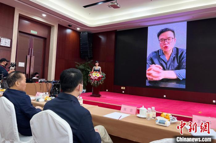 唐帥通過在線視頻發(fā)言?!∨诵衽R 攝