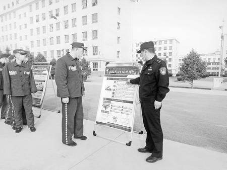 平?jīng)霰O(jiān)獄民警向市民發(fā)放憲法宣傳彩頁。新甘肅·甘肅法制報通訊員白宏斌攝