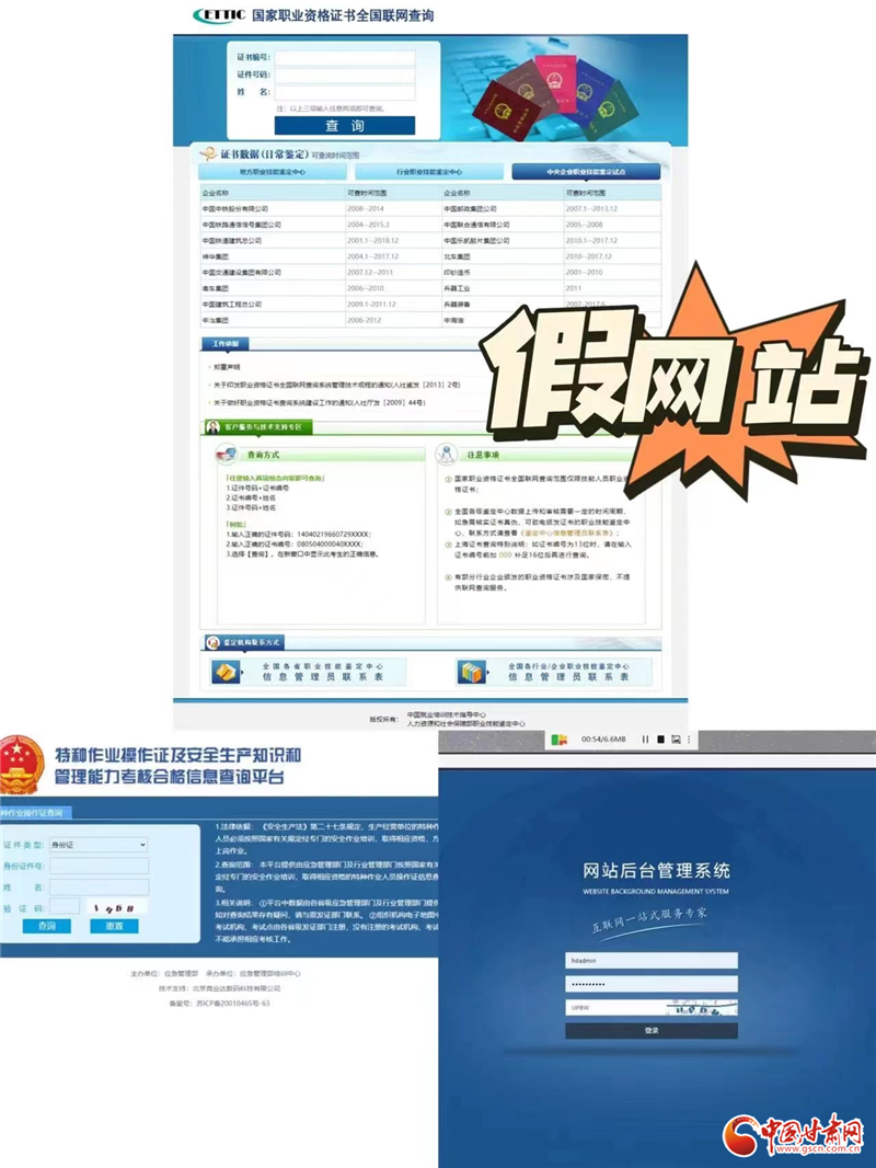 近年來,有不法分子假冒應(yīng)急管理部門政府網(wǎng)站和證書信息查詢平合,偽造、變造、買賣假冒的特種作業(yè)操作證及安全生產(chǎn)知識和管理能力考核合格證,導(dǎo)致不具備基本安全技能人員從事高風(fēng)險(xiǎn)作業(yè)或管理活動,給企業(yè)生產(chǎn)經(jīng)營活動埋下重大事故隱惠,嚴(yán)重?cái)_亂正常安全生產(chǎn)秩序,侵害企業(yè)和從業(yè)人員合法權(quán)益。