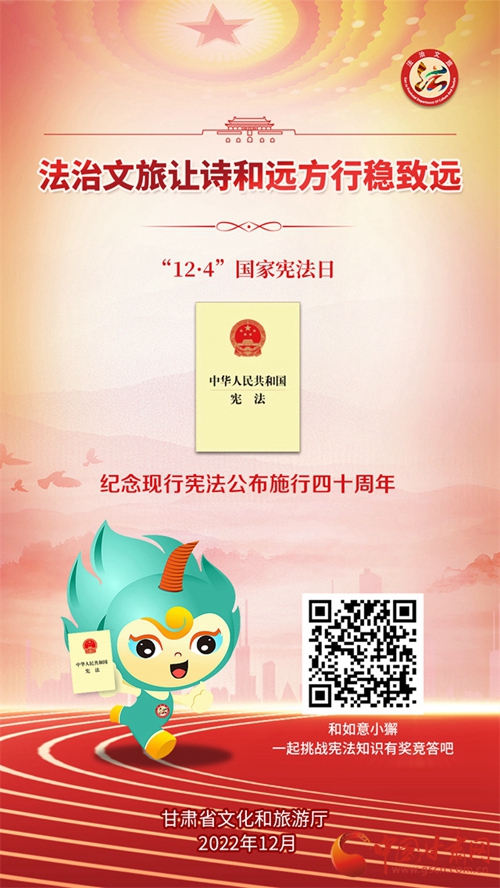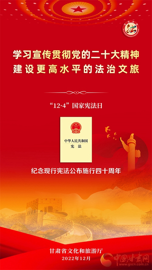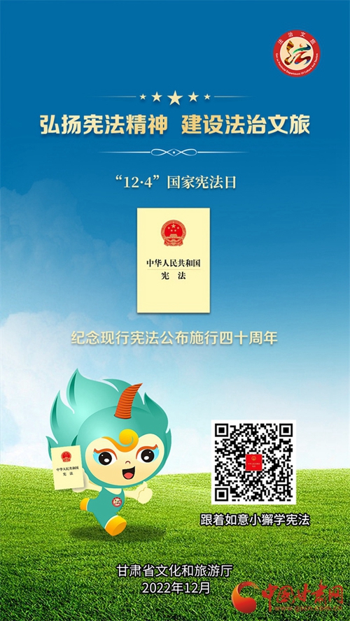 中國甘肅網(wǎng)12月7日訊 (本網(wǎng)記者 張?zhí)m琴)自12月4日國家憲法日暨憲法宣傳周啟動以來,我省各地開展了形式多樣的宣傳活動,為深入學習宣傳貫徹黨的二十大精神,不斷增強人民群眾法治意識,形成全民維護憲法的濃厚氛圍,同時加強文化和旅游的法治宣傳教育,省文旅廳近日開展了國家憲法日暨憲法宣傳周系列活動。