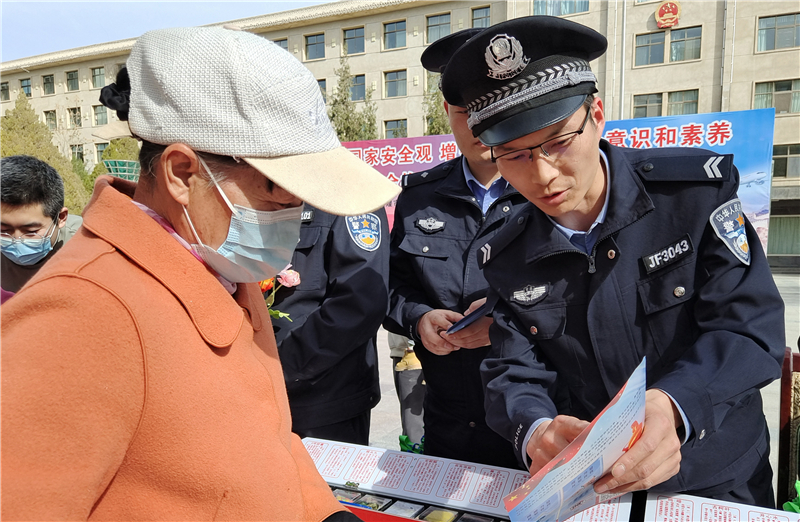 為切實增強(qiáng)廣大干部群眾的國家安全意識,推動國家安全宣傳教育工作深入開展,4月15日上午,敦煌市公安局國保大隊牽頭組織法制、刑偵、經(jīng)偵、禁毒等部門在市政廣場開展以“貫徹總體國家安全觀,增強(qiáng)全民國家安全意識和素養(yǎng),夯實以新安全格局保障新發(fā)展格局的社會基礎(chǔ)”為主題的宣傳活動。