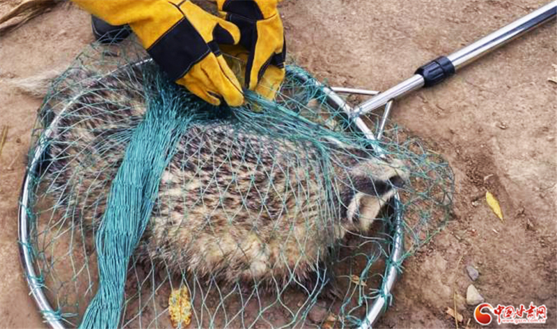 經林草局工作人員辨認后確定,該野生動物為國家“三有”保護動物——豬獾。檢查發(fā)現(xiàn),該豬獾已懷孕,無明顯外傷,處于生養(yǎng)前期。隨后,工作人員又聯(lián)系天水市野生動物救助中心,并將該豬獾送至天水市野生動物救助中心進行救助。