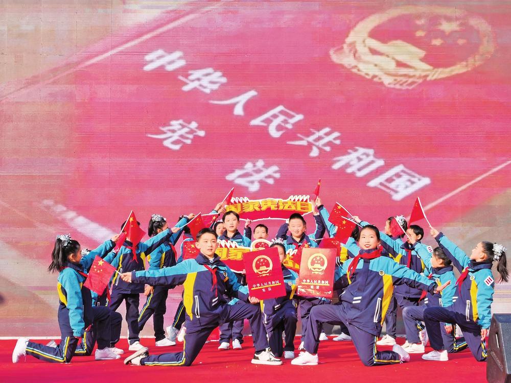 張掖路小學學生演出情景歌舞《憲法伴我們成長》。12月4日,蘭州市在市民廣場舉行2024年“12·4”國家憲法日暨憲法宣傳周活動。 新甘肅·甘肅法治報記者楊丹攝