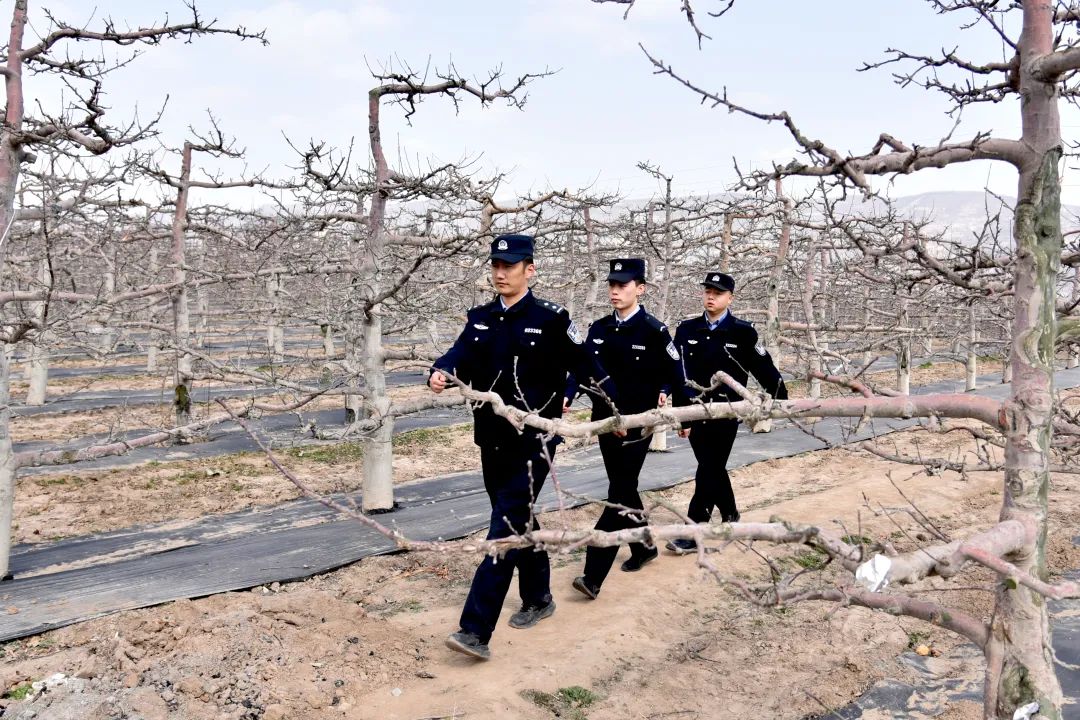 當(dāng)夕陽(yáng)給蘋果樹(shù)鍍上金邊,結(jié)束巡邏的民警們又聚在派出所研判當(dāng)天收集的農(nóng)情。在這片被精心呵護(hù)的土地上,青綠色的嫩芽正醞釀著金秋的甜蜜,花牛派出所民輔警用腳步丈量果園,用責(zé)任護(hù)航平安。他們的身影與果農(nóng)們的笑臉交織在一起,構(gòu)成了一幅和諧美好的春耕畫卷。“一年之計(jì)在于春,春耕是農(nóng)民一年中最重要的時(shí)候,我們多跑跑腿、多操操心,果農(nóng)們就能安心種地、放心收成。”張?zhí)锝苄χf(shuō)道。陽(yáng)光下,他們的警徽熠熠生輝,映照出人民警察為人民的初心與擔(dān)當(dāng),而警民共繪的平安畫卷,早已融入隴原春深處的每一寸生機(jī)。