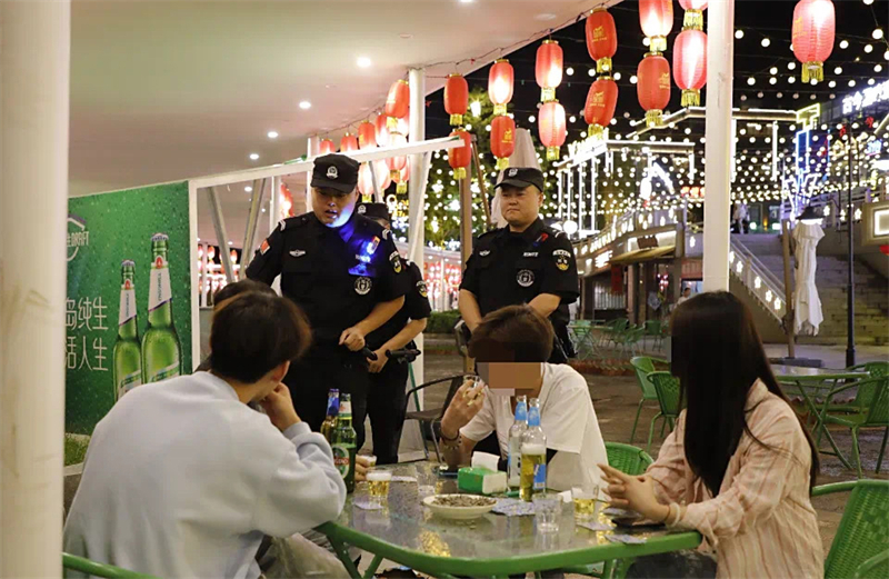 與此同時(shí),武都最具“煙火氣”的夜市區(qū)域,也迎來了特別的守護(hù)者。熱鬧的萬象街景區(qū)入口,警車格外醒目。7月31日晚,特巡警馬寧和同事正對燒烤攤前喝酒的年輕人做安全宣講。“喝了幾杯沒事,但騎車不安全,叫個(gè)代駕吧,安全第一。”燒烤攤張老板說:“以前收攤晚,總擔(dān)心有人鬧事。現(xiàn)在警察就在旁邊守著,處理糾紛又快又公道,心里特別有底。”數(shù)據(jù)顯示,這支夜間警力已快速調(diào)解酒后口角、消費(fèi)糾紛47起,發(fā)放防詐宣傳單3200余份,有效維護(hù)了夜市經(jīng)濟(jì)的良好秩序。
