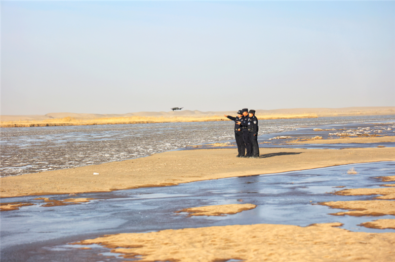 ▲金塔縣公安局城關(guān)派出所民輔警深入轄區(qū)生態(tài)保護(hù)區(qū)開展車巡、步巡、無人機巡,構(gòu)建起全域覆蓋、空地聯(lián)動、精準(zhǔn)高效的生態(tài)安全防控體系,為織密生態(tài)保護(hù)網(wǎng)保駕護(hù)航。(葛萬譽 攝)