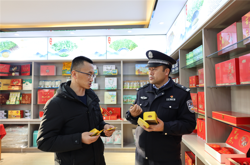 ▲通渭縣公安局經(jīng)偵大隊民警深入轄區(qū)食品公司,開展普法宣傳和風(fēng)險隱患排查活動。(孛金鵬 攝)