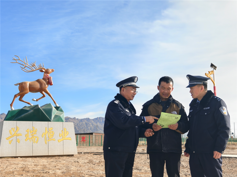 ▲山丹縣公安局清泉派出所民輔警深入轄區(qū)梅花鹿養(yǎng)殖基地,了解冬季梅花鹿養(yǎng)殖情況,開展隱患排查、治安巡防、反詐宣傳、糾紛調(diào)解等護(hù)企安商工作。(尚婧 攝)