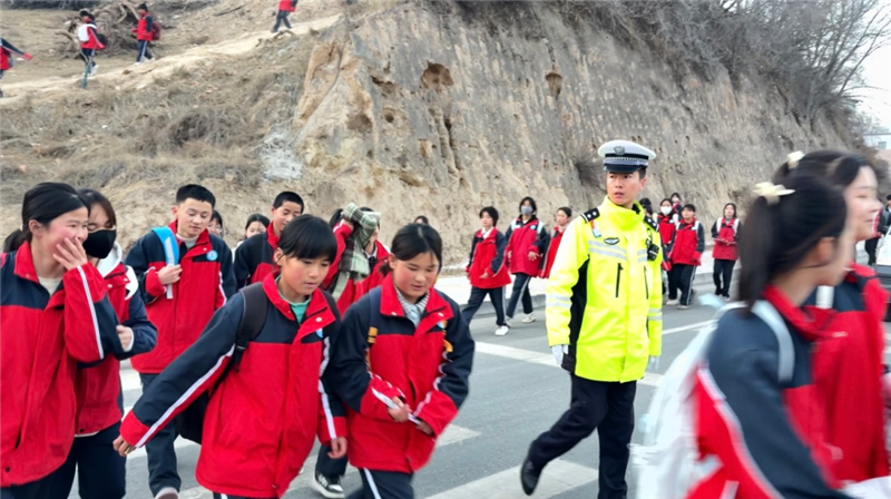 ▲東鄉(xiāng)縣公安局民輔警開展護(hù)學(xué)工作,重點在校園周邊開展交通疏導(dǎo)、清理違停車輛、引導(dǎo)學(xué)生安全過馬路。(完瑪草 攝)