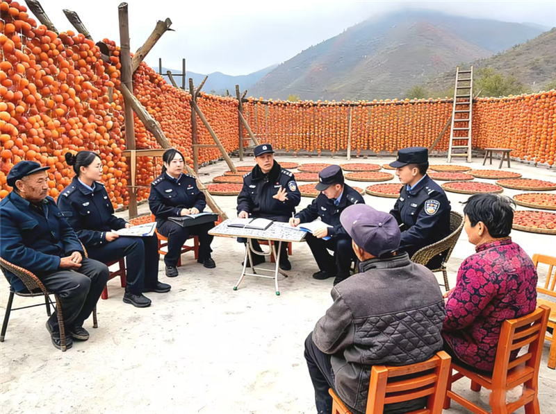 ▲舟曲縣公安局城關(guān)派出所民輔警深入轄區(qū)柿子晾曬場和柿子收購點,開展反詐宣傳活動。(朱彤 攝)
