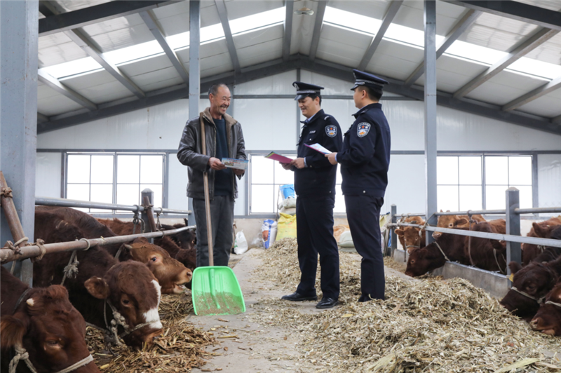 ▲平?jīng)鍪泄簿轴轻挤志终优沙鏊褫o警深入轄區(qū)紅牛養(yǎng)殖基地,開展針對性普法宣傳活動,進(jìn)一步筑牢轄區(qū)紅牛養(yǎng)殖產(chǎn)業(yè)法治防線,提升廣大養(yǎng)殖戶的法律意識。(張鏡鏡 攝)