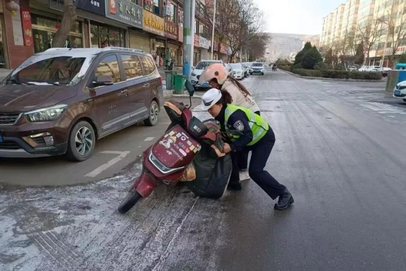 雨雪寒潮之中,定西公安交警始終堅守崗位,在疏堵保暢的同時,化身“暖心衛(wèi)士”,主動為受困群眾和車輛提供貼心救助。面對積雪路面車輛打滑、拋錨等突發(fā)情況,民輔警們不畏嚴(yán)寒,俯身推車、幫助安裝防滑鏈、排查車輛故障;針對出行不便的老人、學(xué)生等群體,主動攙扶護(hù)送,耐心解答指引、提供應(yīng)急幫助。一幕幕暖心瞬間在雨雪街頭不斷上演,贏得過往群眾紛紛點贊。