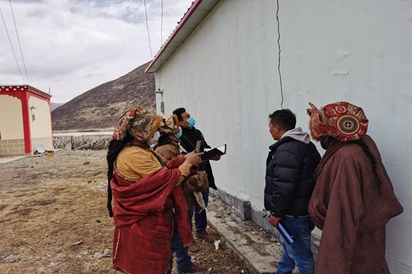 圖為石渠縣紀檢監(jiān)察干部到受災(zāi)的長須貢瑪鄉(xiāng)、溫波鎮(zhèn)、瓦須鄉(xiāng)等鄉(xiāng)鎮(zhèn),深入震中實地查看排查房屋受損情況,確保受災(zāi)人員、受災(zāi)房屋等情況核實精準(zhǔn)。