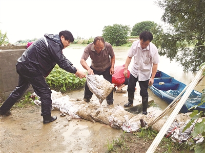 7月13日,江蘇省宜興市丁蜀鎮(zhèn)紀檢干部到該鎮(zhèn)雙廟村防汛一線,在督促履行抗洪搶險職責的同時,與當地干部群眾一道加固河堤。毛光云 攝