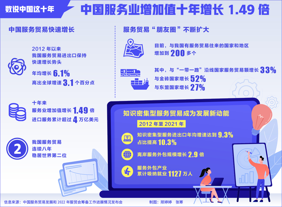 數(shù)說(shuō)中國(guó)這十年丨中國(guó)服務(wù)業(yè)增加值十年增長(zhǎng)1.49倍