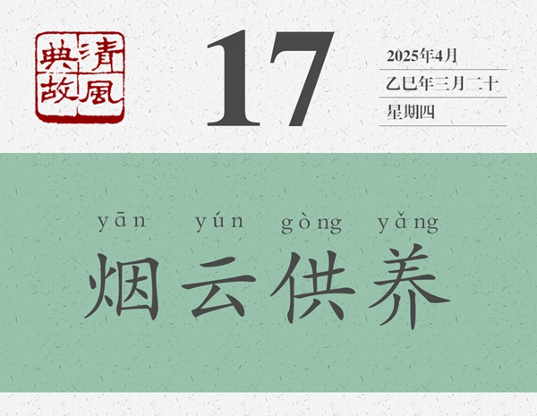 煙云,即山水風(fēng)景。供養(yǎng),即陶冶滋養(yǎng)。“畫中煙云供養(yǎng)”的原意是,黃公望和米友仁之所以貌如童顏,神明不衰,是因為其山水畫中煙雨濛濛、薄霧繚繞的意境滋養(yǎng)了他們。后世即以“煙云供養(yǎng)”為典,喻美好的自然環(huán)境,可以舒暢人的心情,撫慰人的精神。這就是為什么人們把自然環(huán)境好的地方稱作“養(yǎng)生之地”的原因。錢大昕《梁山舟前輩八十》詩:“占得西湖第一峰,煙云供養(yǎng)幾千重。門懸曼碩山舟字,人識坡公笠屐容。”