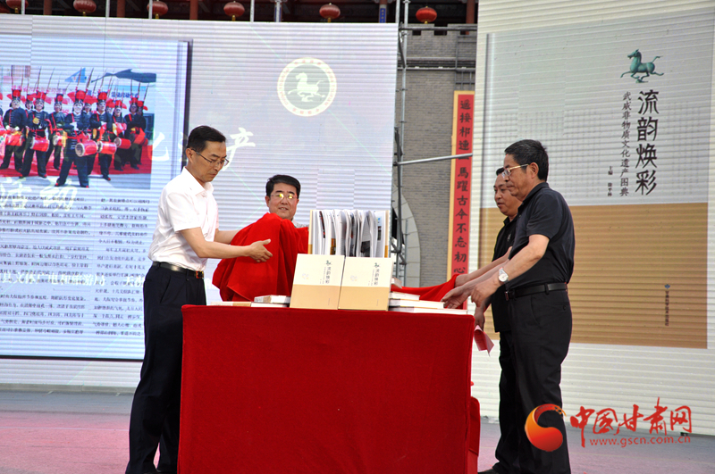 活動中,《流韻煥彩——武威非物質(zhì)文化遺產(chǎn)圖典》揭幕并首發(fā)。《流韻煥彩——武威非物質(zhì)文化遺產(chǎn)圖典》是由武威市文體廣電和旅游局組織編寫,讀者出版集團旗下的甘肅科學技術(shù)出版社出版,先后歷時5載。該圖典將散落在武威廣袤大地上的璀璨珍珠串連起來,將牽動著記憶深處的濃濃情思匯聚起來,展示了一個歷史武威、一個文化武威、一個多彩武威,是解讀武威的最好途徑。該圖典共收錄了84個非遺項目,81位項目代表性傳承人,用2000多張圖片和文字介紹,全方位、多角度展示了武威市非遺項目的獨特性、活態(tài)性、傳承性、流變性、綜合性、民族性、地域性等基本特點。該圖典最大的亮點,就是在國家級、省級項目中融入互聯(lián)網(wǎng)思維,加入二維碼視頻鏈接,對項目進行動態(tài)視頻展示,讓《圖典》不僅可看、可讀,而且能說會動,能唱會跳,實現(xiàn)了非遺項目活態(tài)傳承的創(chuàng)新。