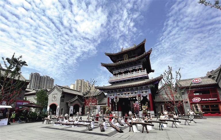 中國甘肅網6月28日訊 據(jù)蘭州日報報道記者 李沛珂 攝)6月27日,由《蘭州日報》、西北民族大學、蘭州老街共同發(fā)起的“數(shù)箏齊奏頌黨恩”活動在蘭州老街舉行。來自西北民族大學音樂學院古箏專業(yè)“明·凈“箏團的40多位師生,齊奏《我的祖國》、《盛世國樂》、《唱支山歌給黨聽》等耳熟能詳?shù)慕浀淝?,吸引路過的市民紛紛駐足圍觀,贏得陣陣掌聲。