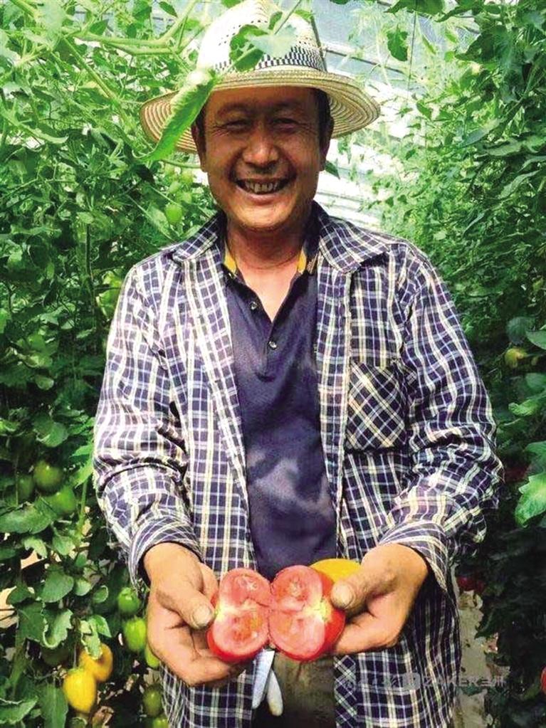 甘憲明展示第六代溫室大棚生產(chǎn)的蔬菜