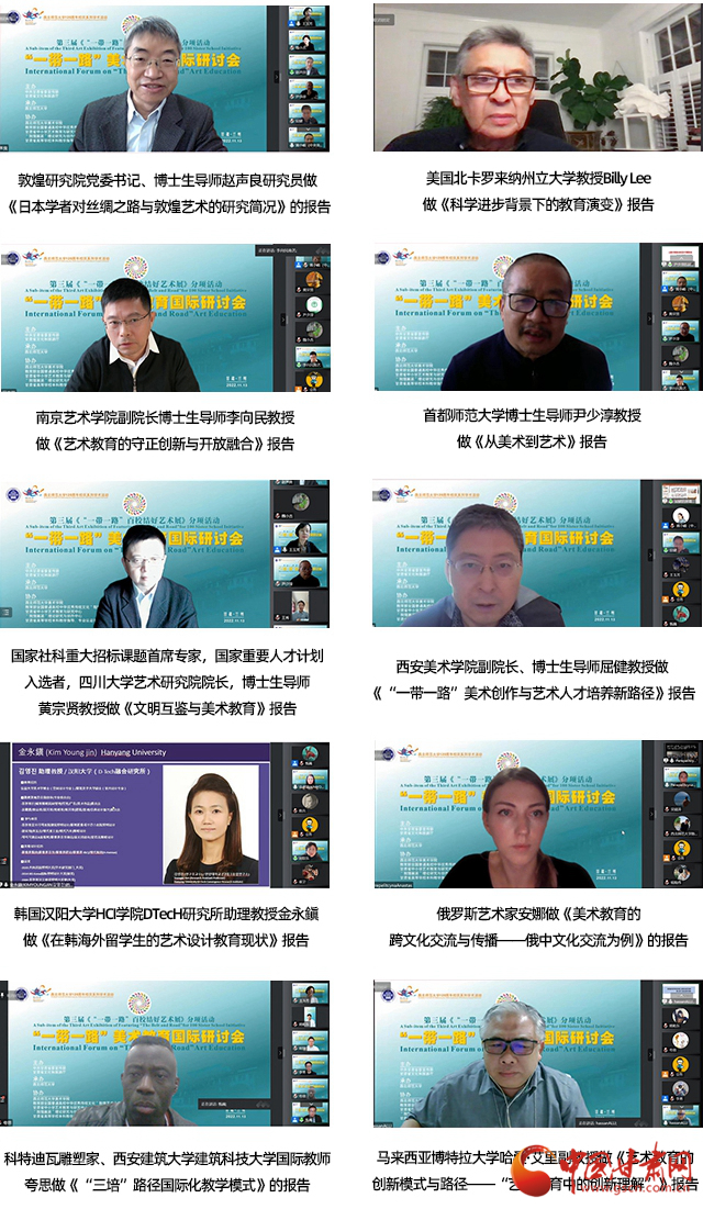 中國(guó)甘肅網(wǎng)11月16日訊 (本網(wǎng)記者 張?zhí)m琴 通訊員 王秀)推進(jìn)“一帶一路”沿線(xiàn)國(guó)家和地區(qū)美術(shù)交流,促進(jìn)美術(shù)教育的國(guó)際化合作和發(fā)展,搭建國(guó)際交流的學(xué)術(shù)平臺(tái),“一帶一路”美術(shù)教育國(guó)際研討會(huì)14日在西北師范大學(xué)落幕。來(lái)自美國(guó)、韓國(guó)、俄羅斯、馬來(lái)西亞等十個(gè)國(guó)家,三十八所海內(nèi)外高校、研究院、美術(shù)館、美術(shù)協(xié)會(huì)、雜志社、中小學(xué)領(lǐng)域近五十位專(zhuān)家在線(xiàn)上參加了會(huì)議,深入分析了當(dāng)前美術(shù)教育所面臨的挑戰(zhàn)與機(jī)遇,共同探討了面向未來(lái)的美術(shù)教育模式、路徑和前景。