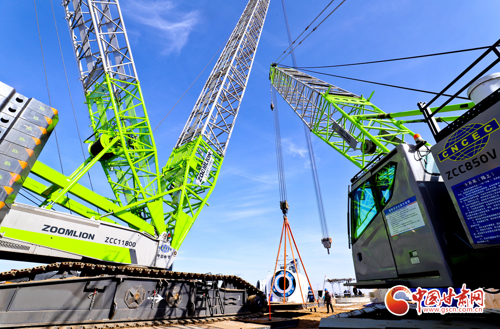 2月21日,張掖市臨澤縣平川北灘30萬千瓦風(fēng)電項目建設(shè)現(xiàn)場,工作人員正在進(jìn)行主機(jī)吊裝。